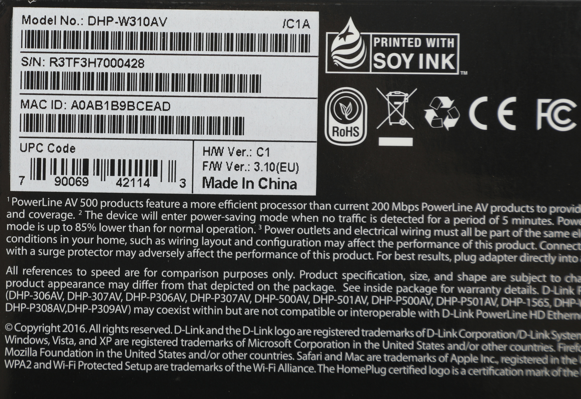 Сетевой адаптер D-link DHP-W310AV Powerline Ethernet