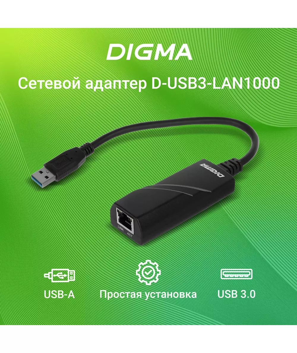 Сетевой адаптер Digma D-USB3-LAN1000 Gigabit Ethernet USB 3.0