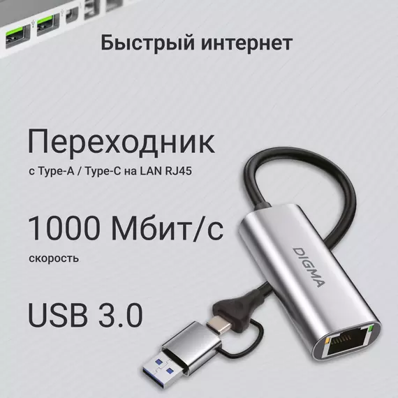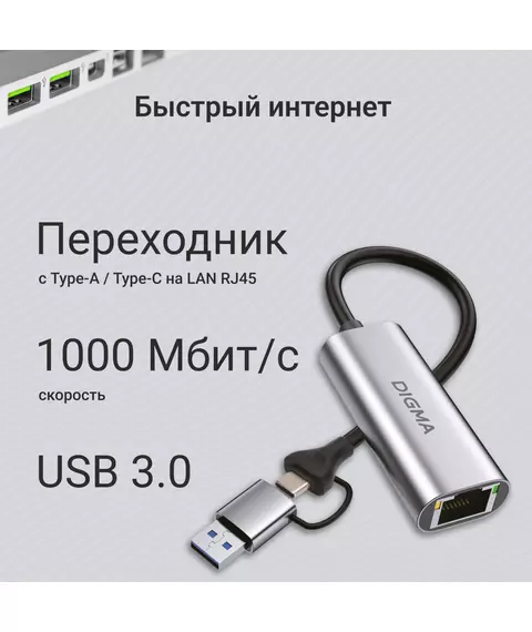 Сетевой адаптер Digma DLA-GEUC01 Gigabit Ethernet USB 3.0