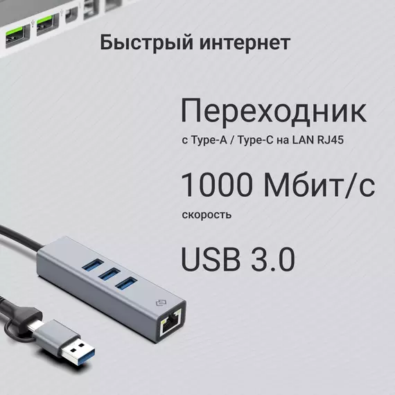 | Особенности | В комплекте переходник USB 3.0 Type-A / Type-C (чипсет RTL8153+RTS5411). Поддерживаемые стандарты IEEE 802.3, 802.3p, 802.3q, 802.3az 802.3x, 802.3u. |