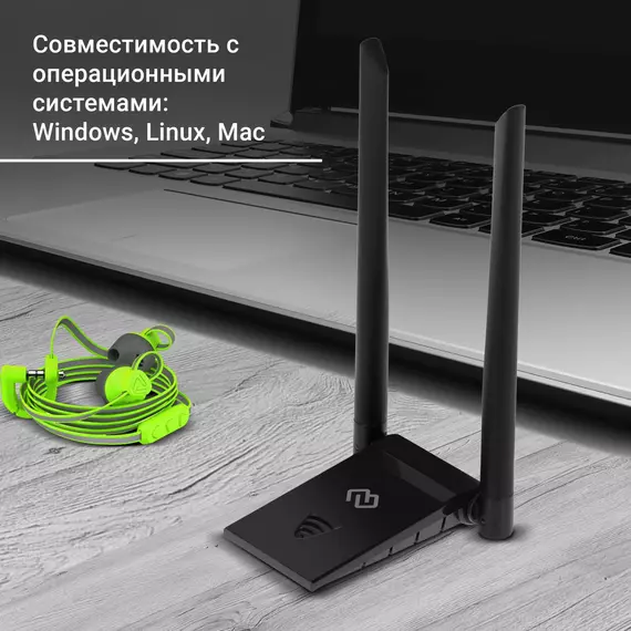 | Особенности | чип RTL8812BU, 2 диапазона 2.4ГГц и 5.8ГГцкабель USB 3.0 длиной 80 см. в комплекте |