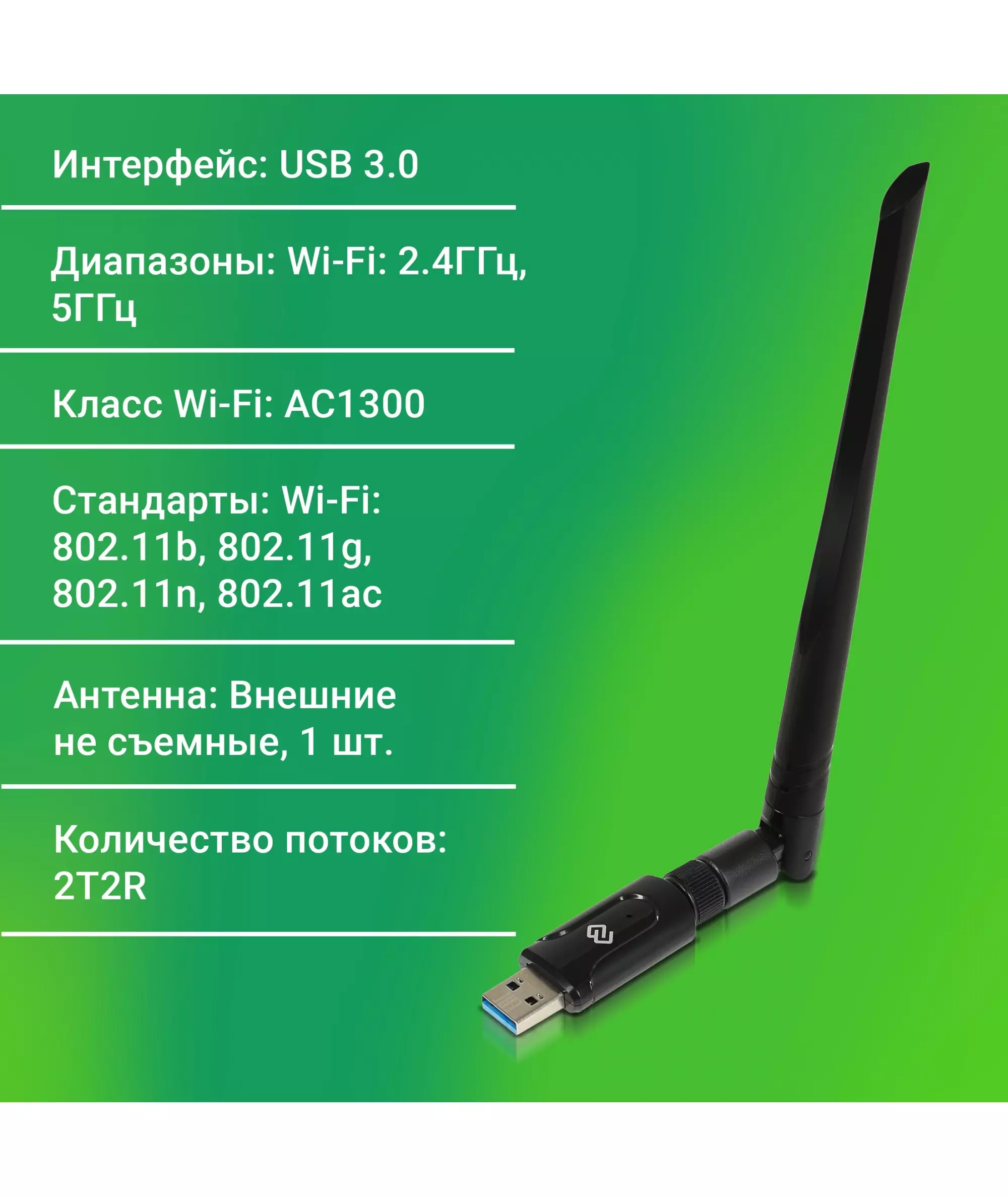 Сетевой адаптер Wi-Fi Digma DWA-AC1300E AC1300 USB 3.0 ант.внеш.съем 1ант.