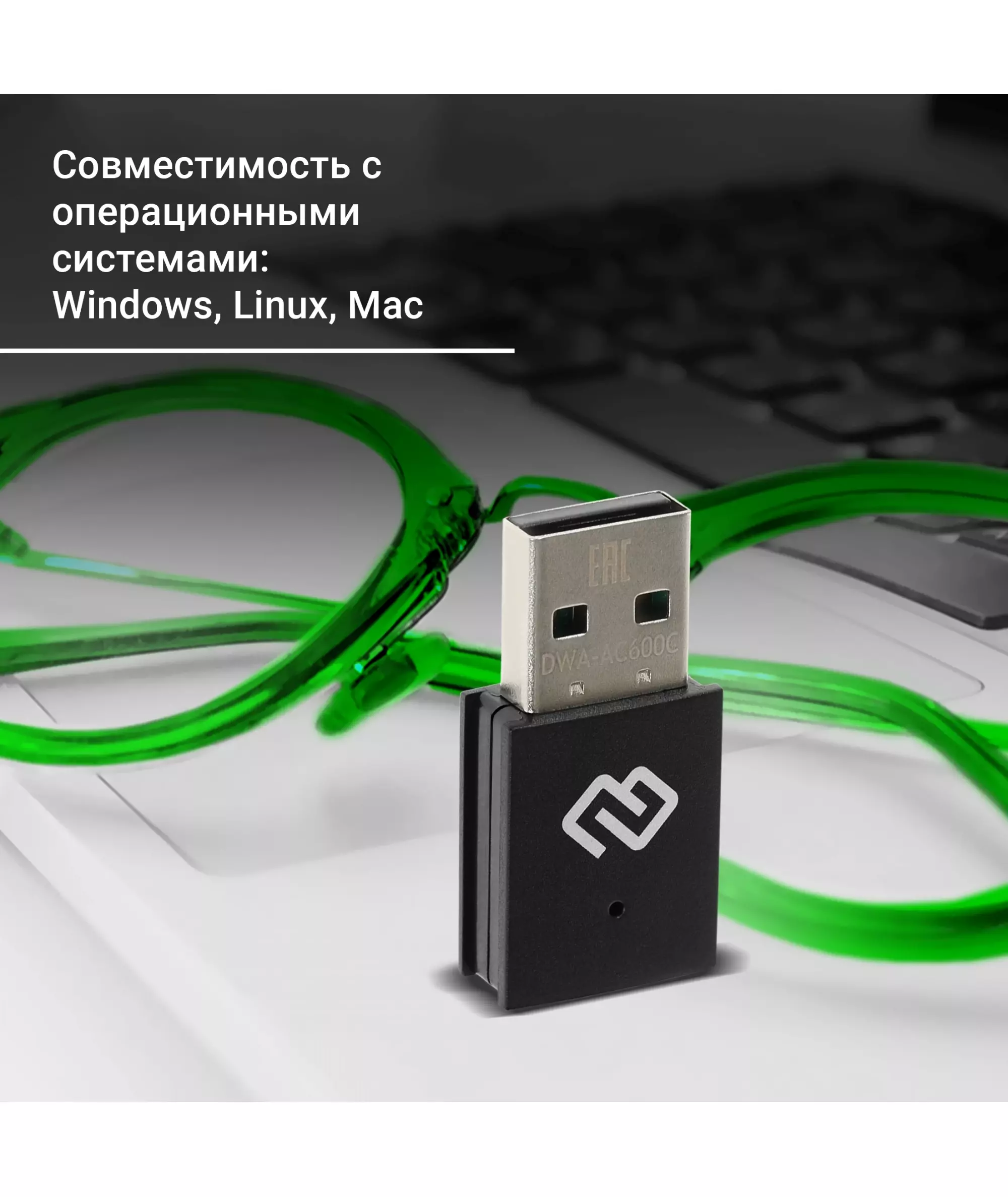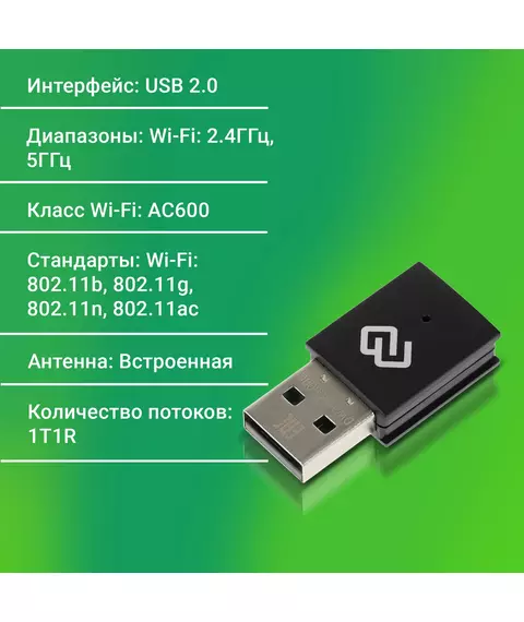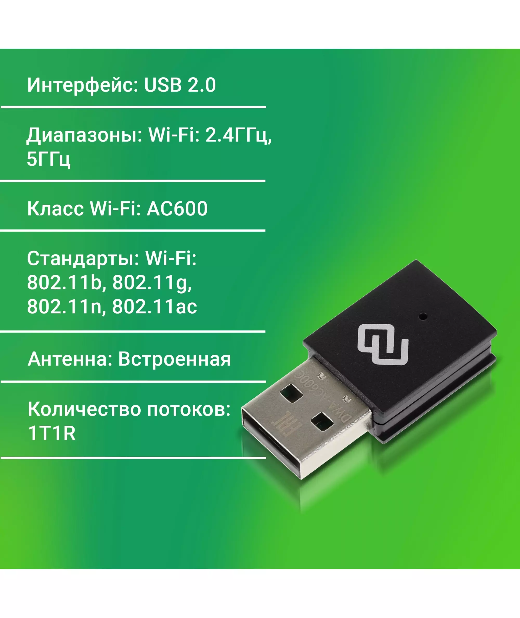 Сетевой адаптер Wi-Fi Digma DWA-AC600C AC600 USB 2.0 (ант.внутр.) 1ант.