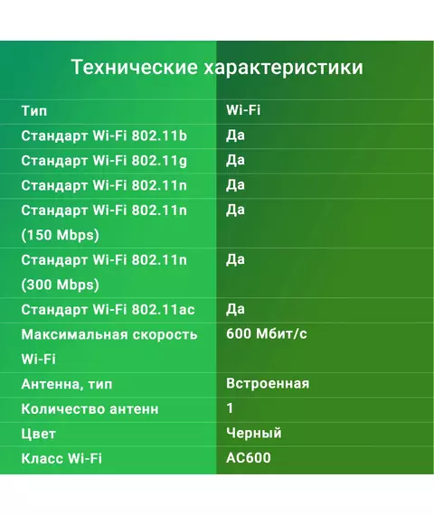 | Максимальная скорость Wi-Fi | 600 Мбит/с |