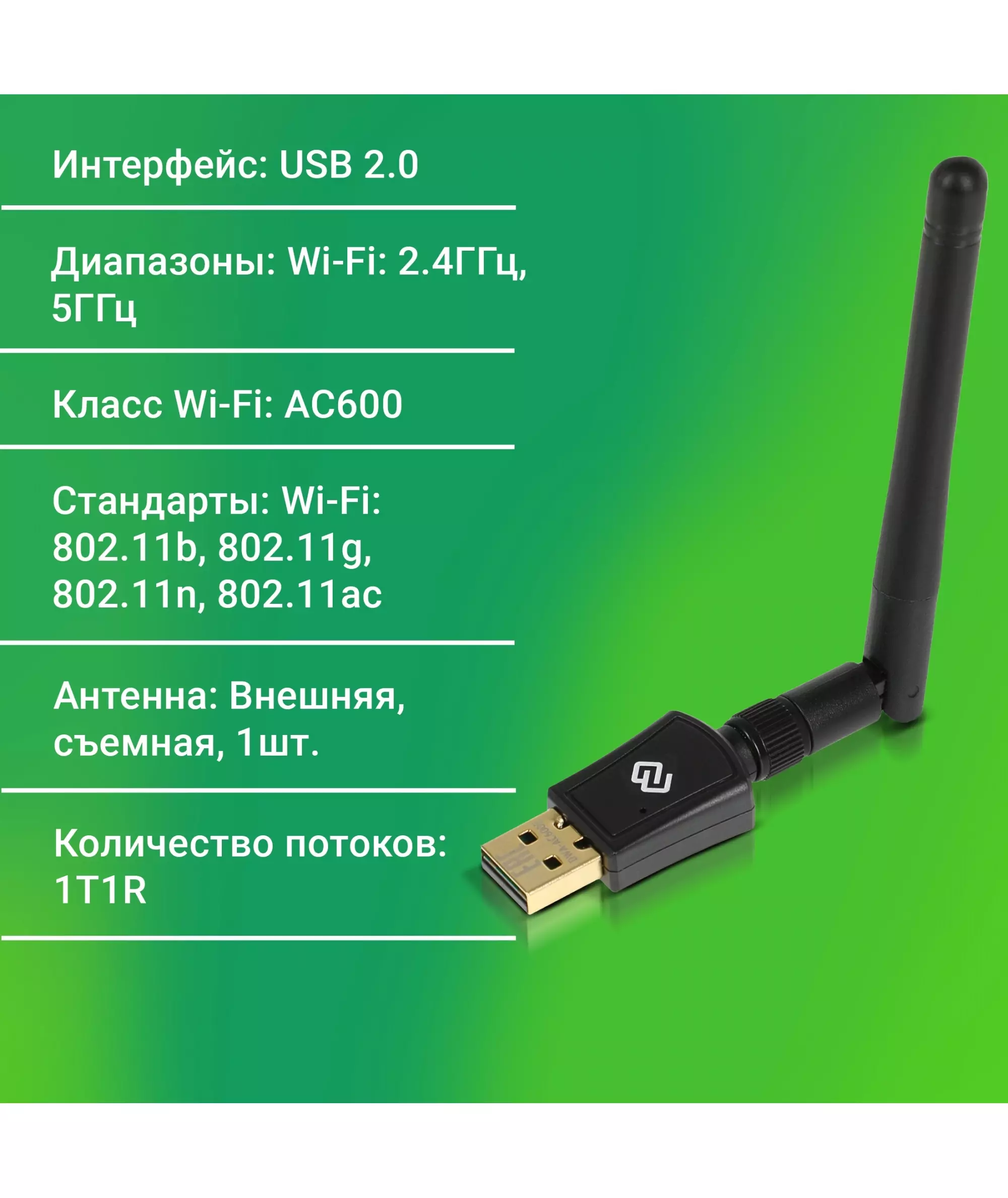 Сетевой адаптер Wi-Fi Digma DWA-AC600E AC600 USB 2.0 ант.внеш.съем 1ант