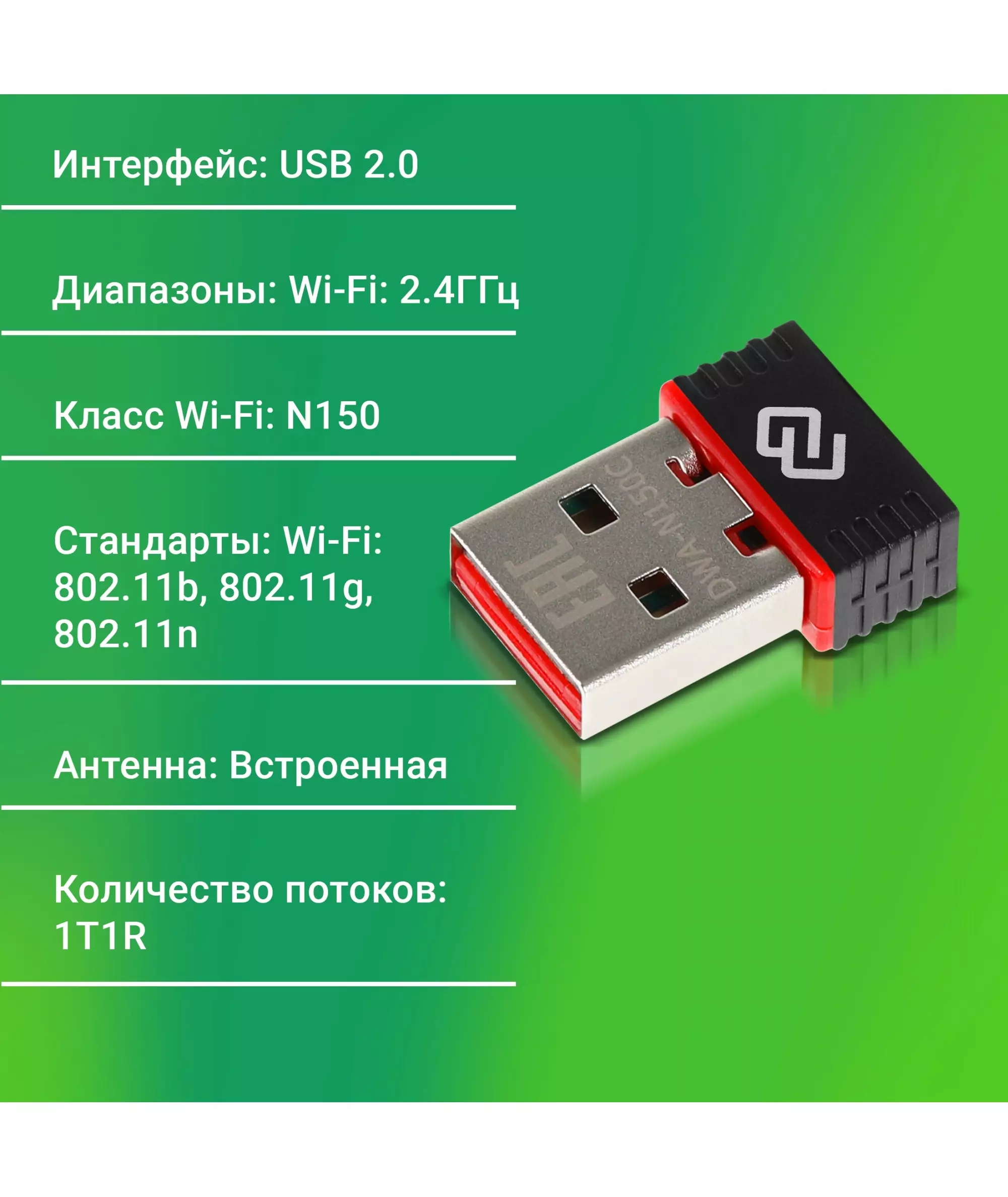 Сетевой адаптер Wi-Fi Digma DWA-N150C N150 USB 2.0 (ант.внутр.) 1ант.