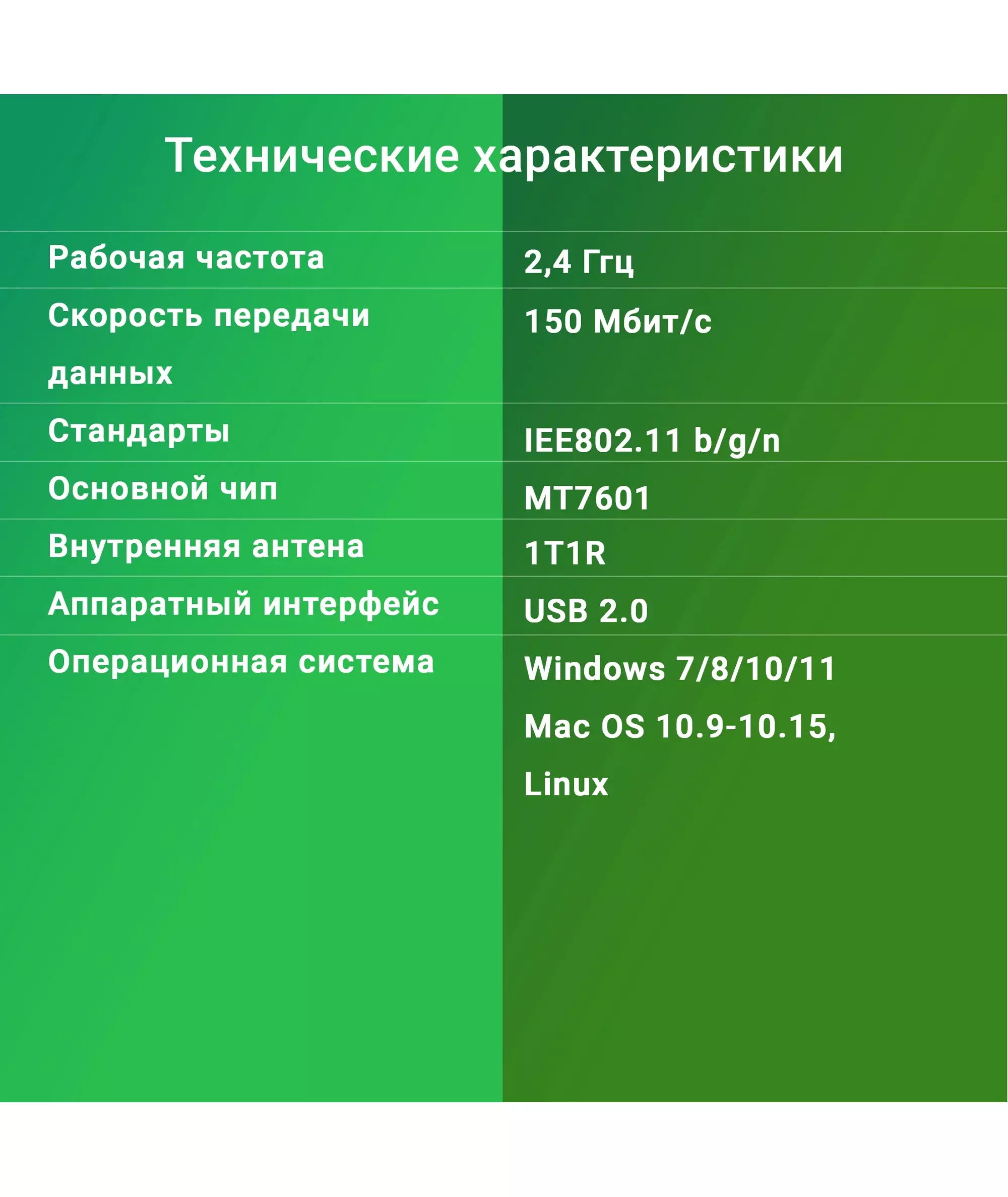 | Особенности | чип MT7601 |