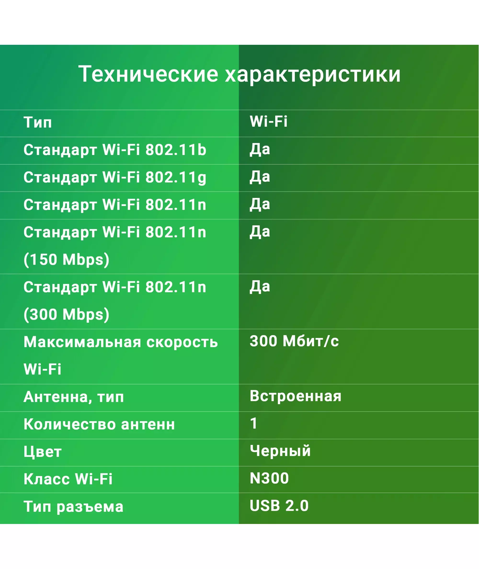 | Максимальная скорость Wi-Fi | 300 Мбит/с |