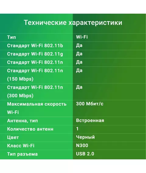 | Класс Wi-Fi | N300 |