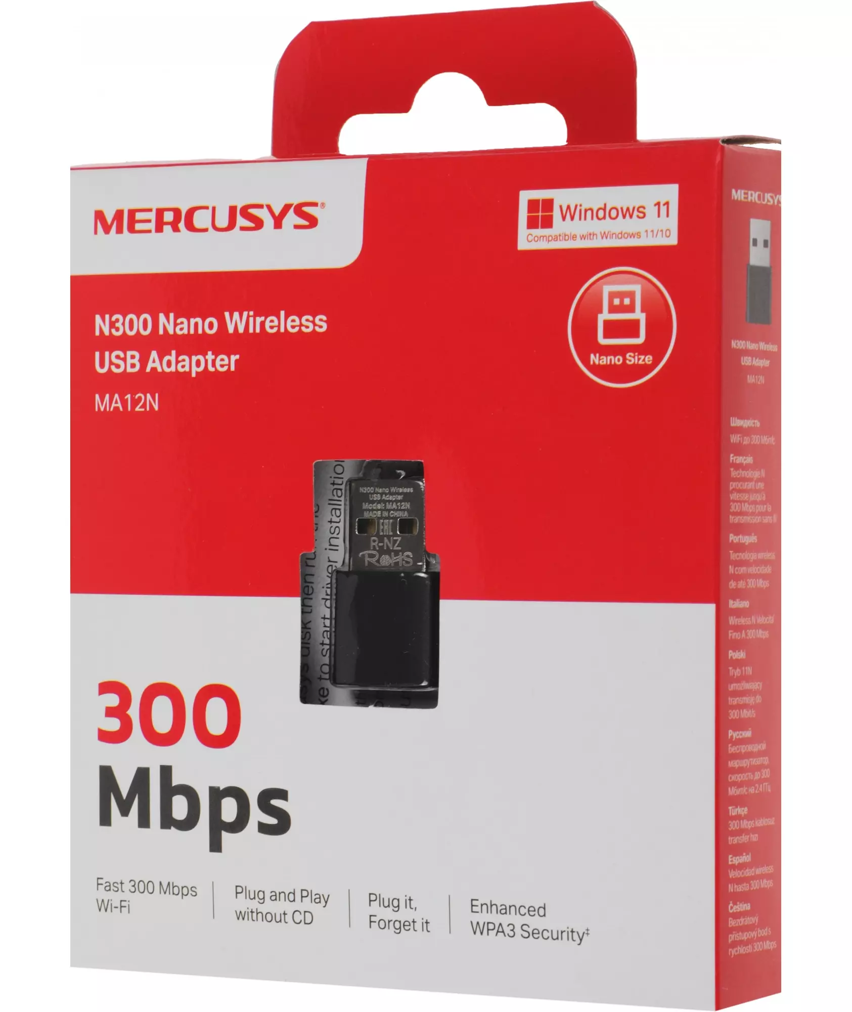 Сетевой адаптер Wi-Fi Mercusys MA12N N300 USB 2.0 ант.внутр. 1ант.