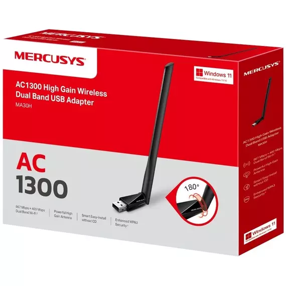 Сетевой адаптер Wi-Fi Mercusys MA30H AC1300 USB 2.0 (ант.внеш.несъем.) 1ант.