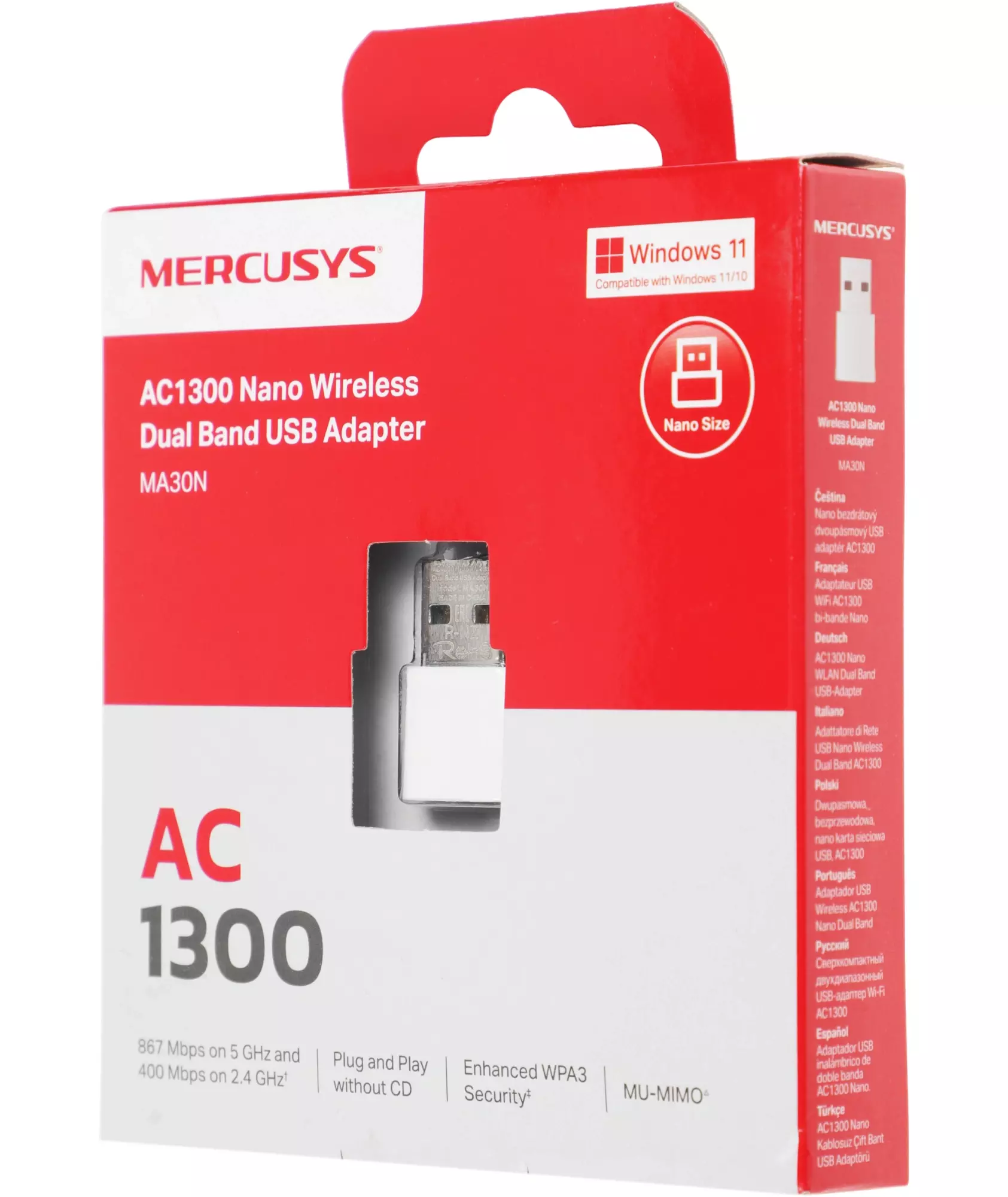Сетевой адаптер Wi-Fi Mercusys MA30N AC1300 USB 2.0 ант.внутр.