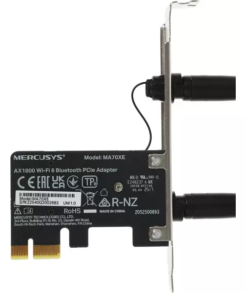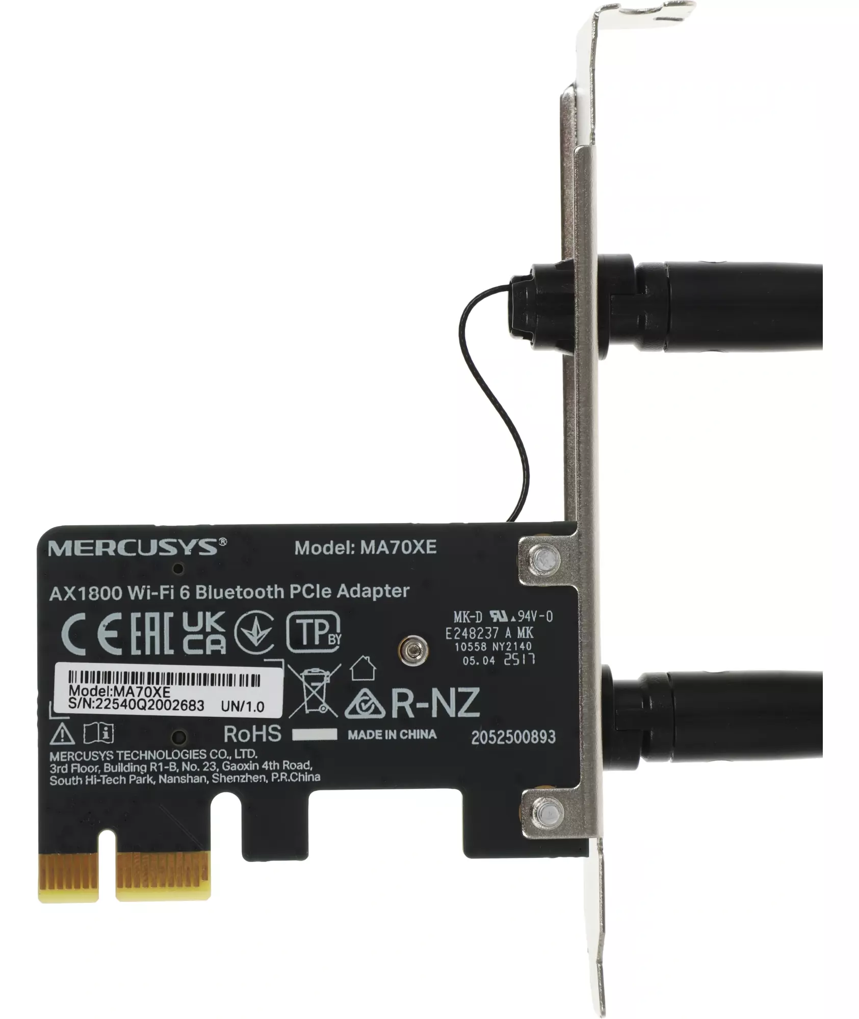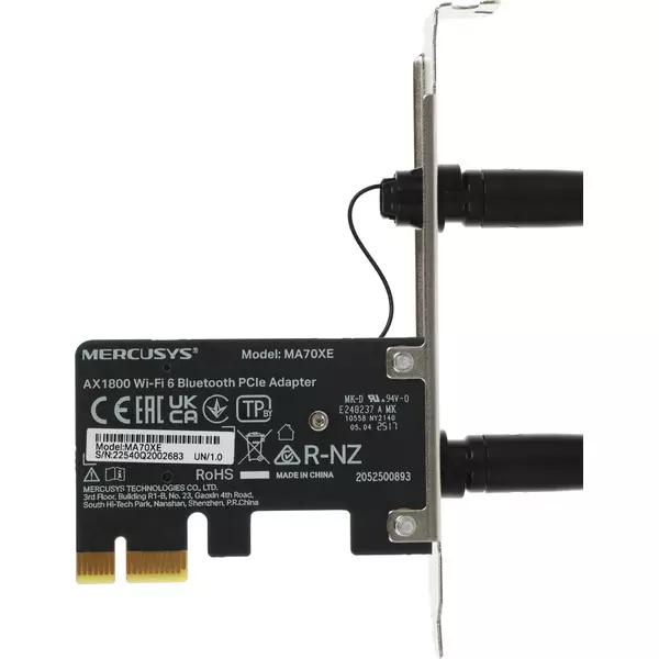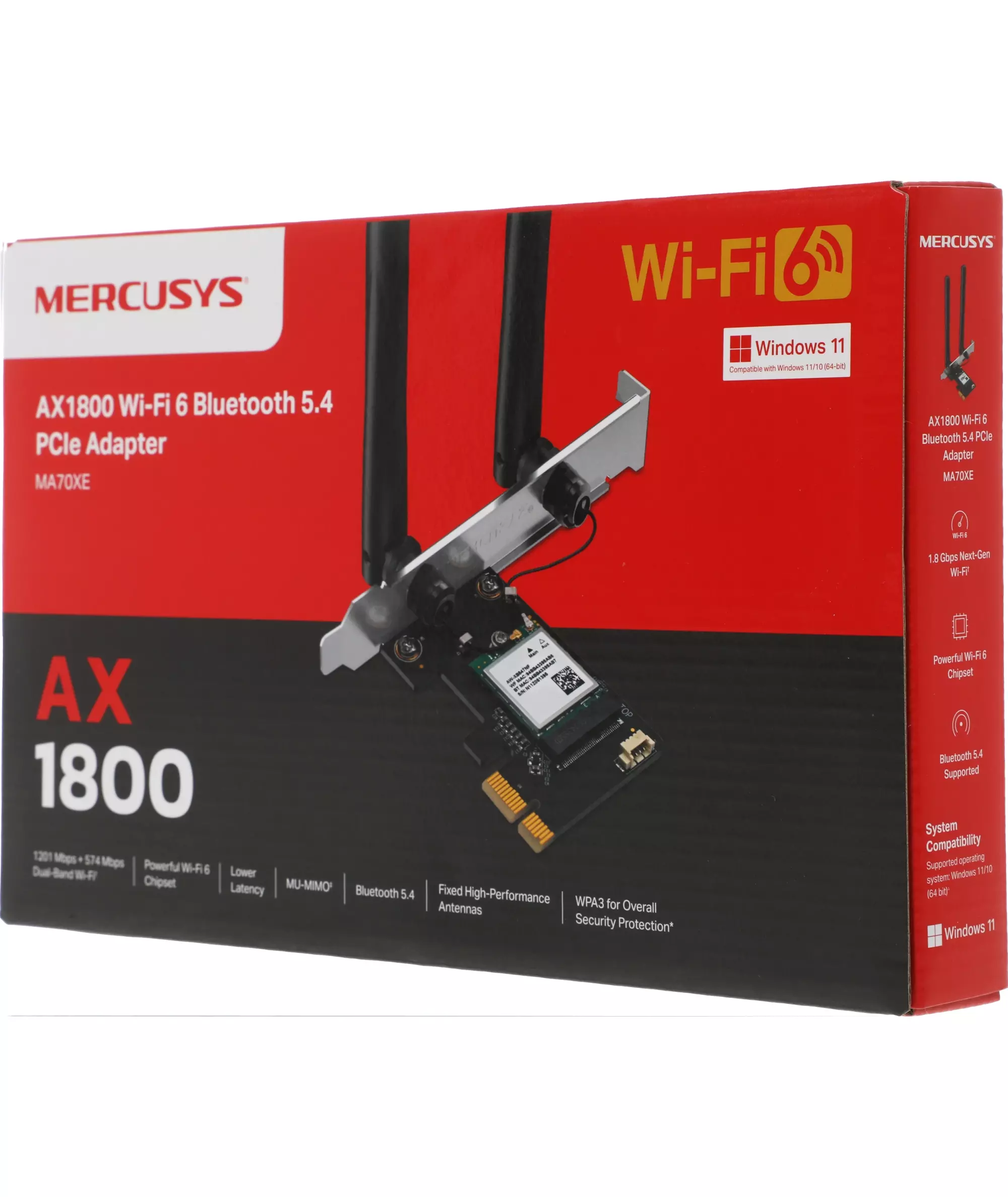 Сетевой адаптер Wi-Fi + Bluetooth Mercusys MA70XE AX1800 PCI Express ант.внеш.несъем. 2ант