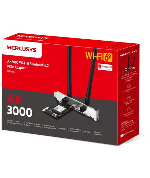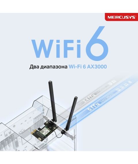 Сетевой адаптер Mercusys MA80XE Wi-Fi + Bluetooth AX3000 PCI Express (ант.внеш.несъем.) 2ант.