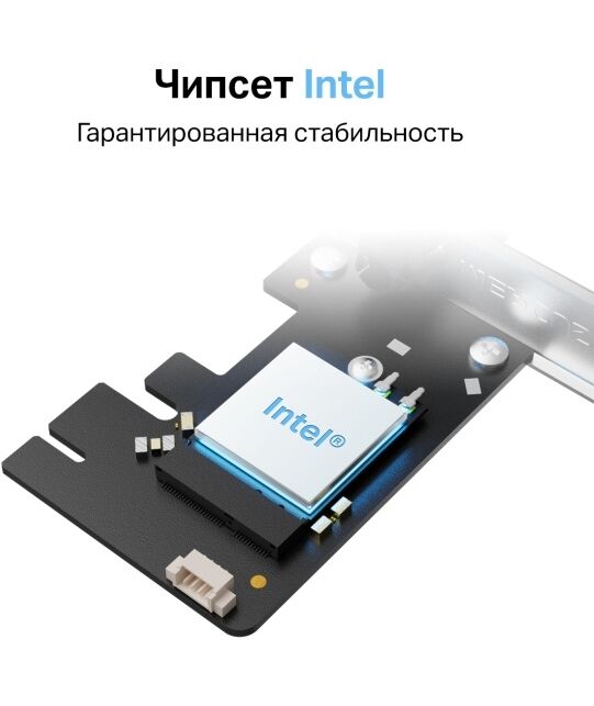 | Особенности | Качественная работа — больше одновременно подключённых устройств, ниже задержка и меньше загруженность сети.Большая площадь покрытия.Чипсет Intel — гарантированная стабильность.Bluetooth 5.2 — обеспечит более высокую скорость подключения и увеличенную площадь покрытия. |