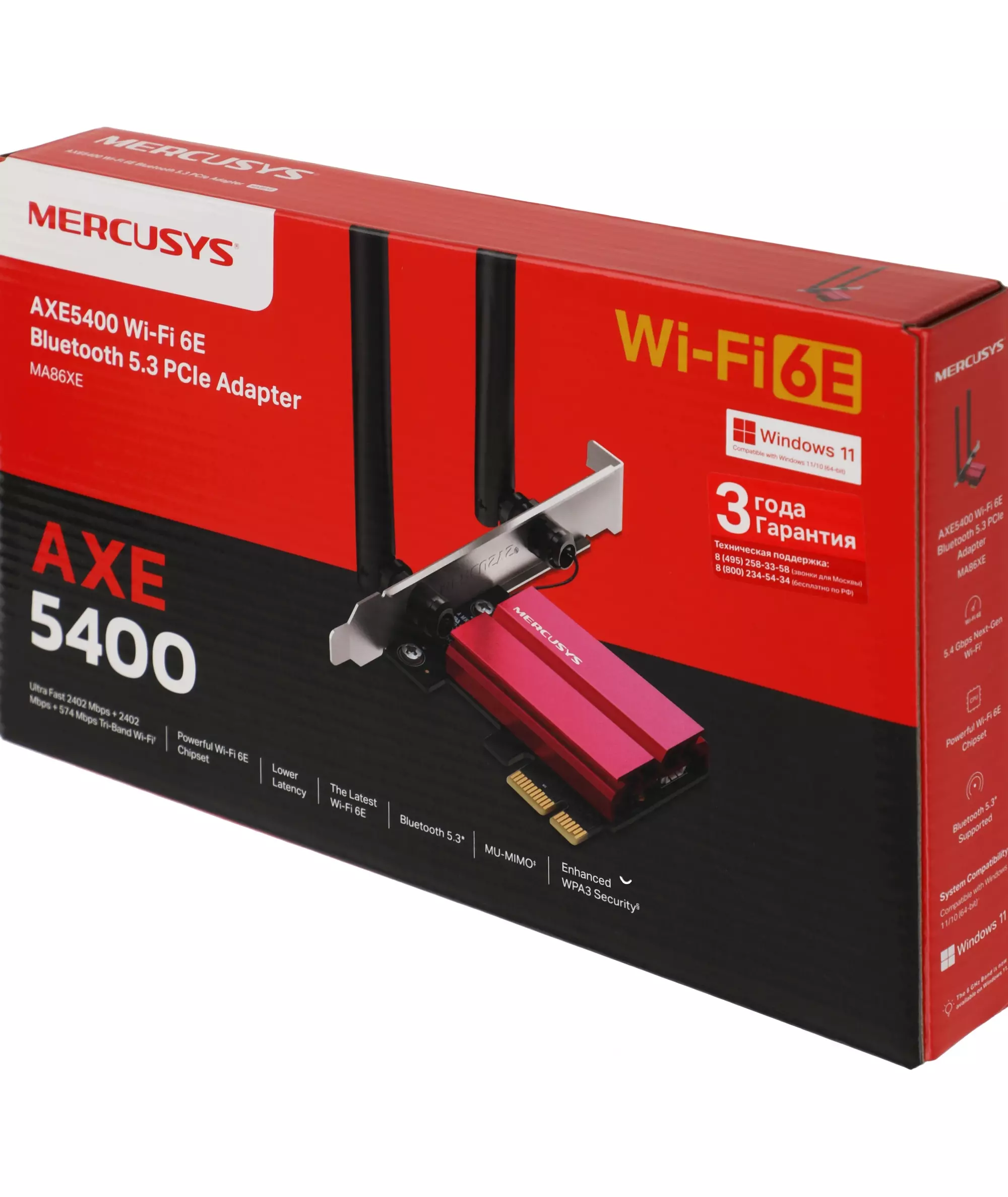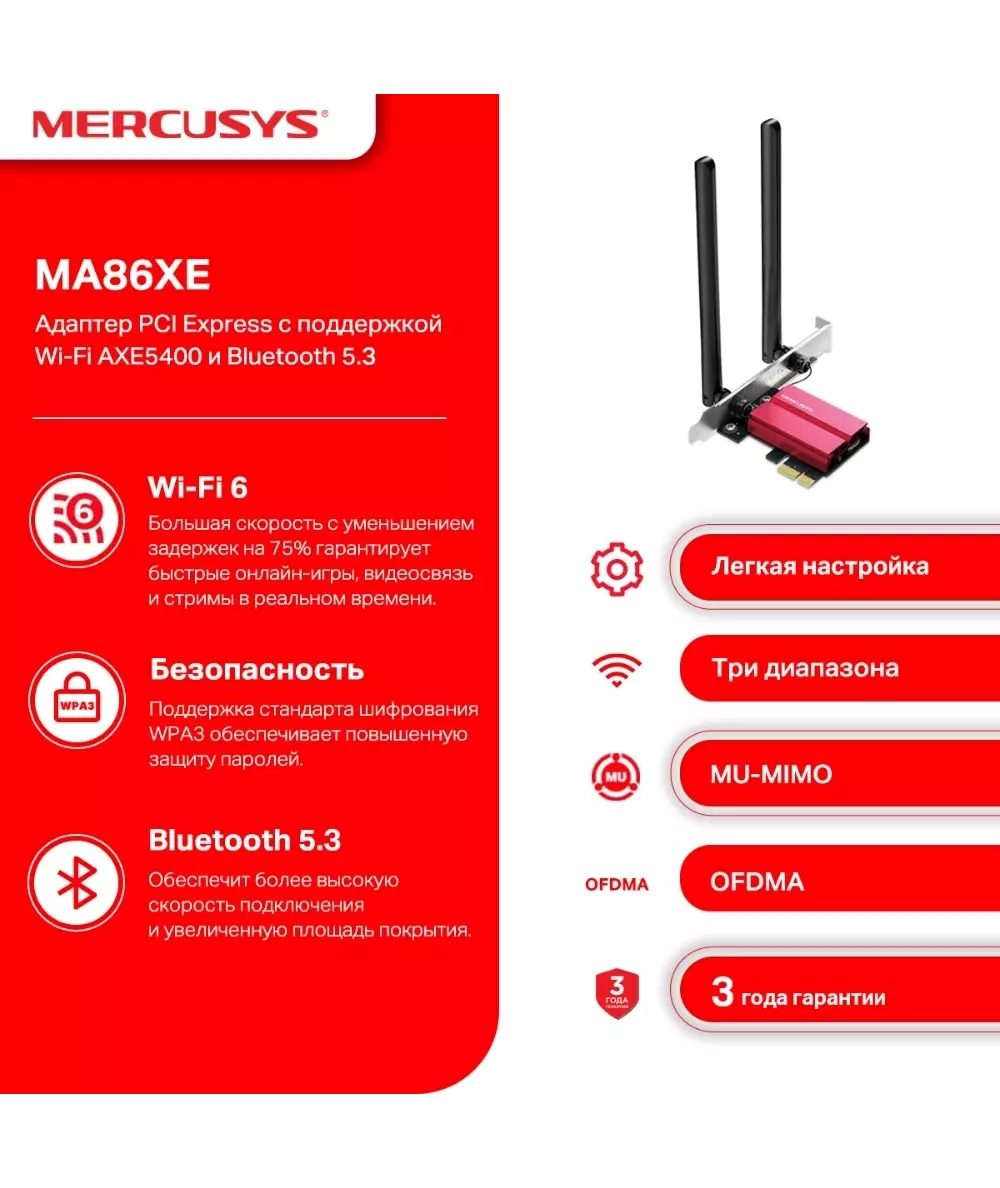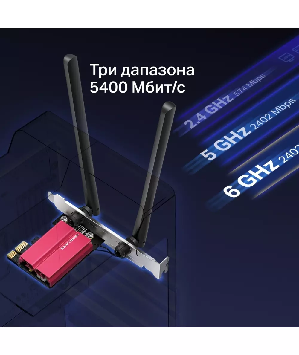 Сетевой адаптер Mercusys MA86XE Wi-Fi + Bluetooth AXE5400 PCI Express ант.внеш.несъем. 2 ант.