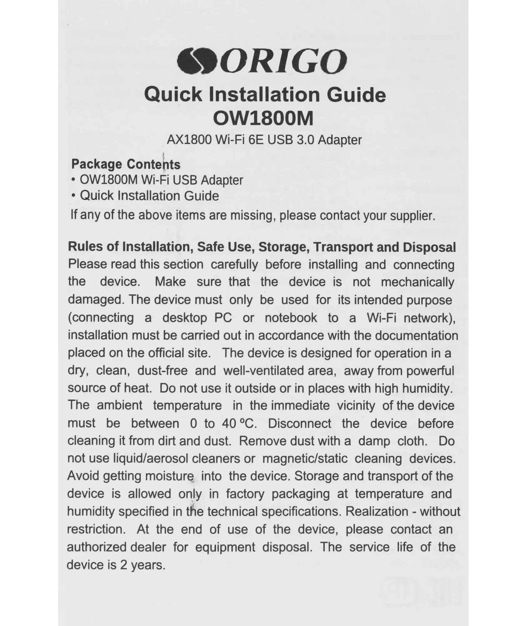Описание ORIGO OW1800M/A1A