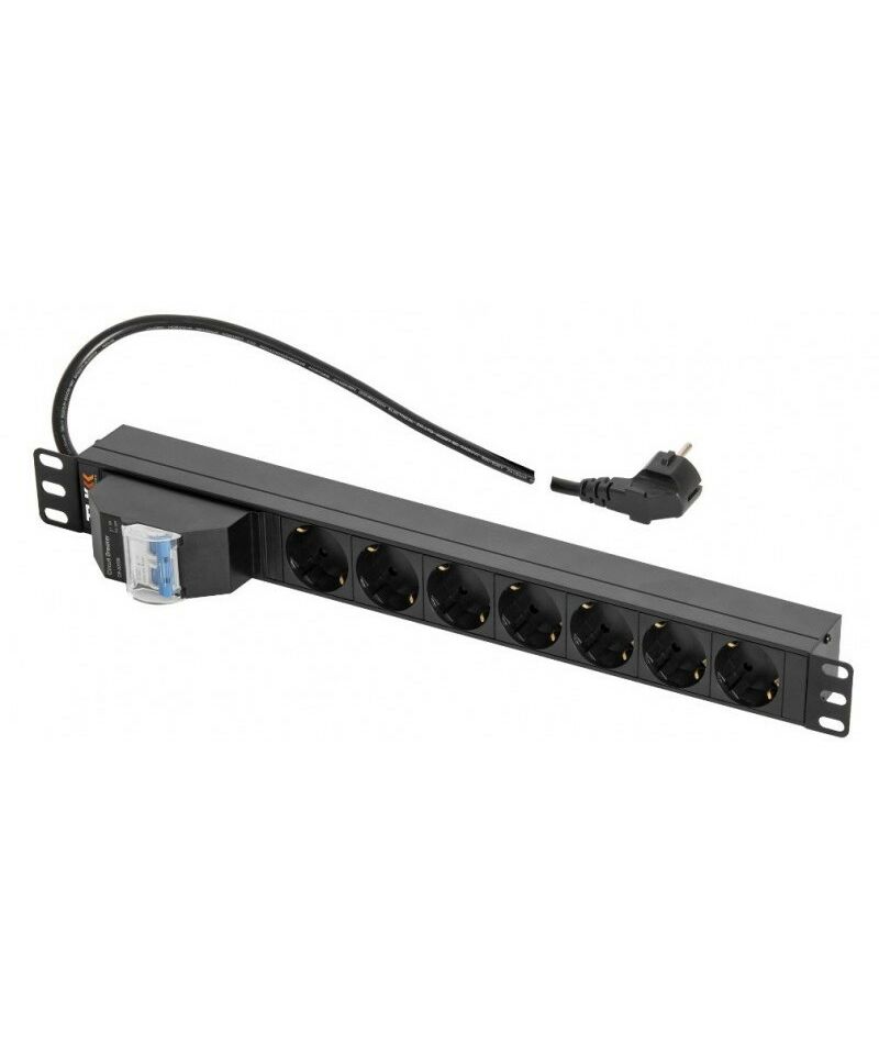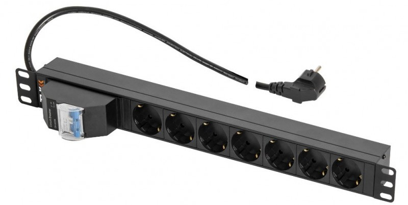 Блок электрических розеток выполнен в виде корпуса с креплением 19” и высотой 1U. Корпус изготовлен из алюминиевого профиля толщиной 1,2 мм, все элементы блока розеток имеют единый контур заземления. Использование корпуса из алюминиевого профиля обеспечивает дополнительную защиту от повреждения при случайных ударах, более высокую термостойкость, облегченную конструкцию, улучшенное охлаждение и дополнительное экранирование от электрических помех.