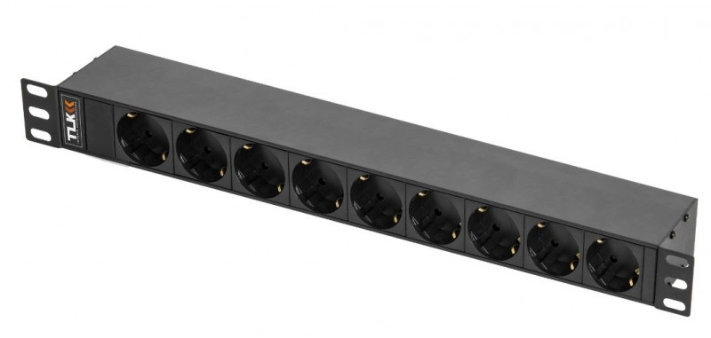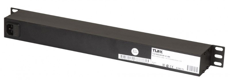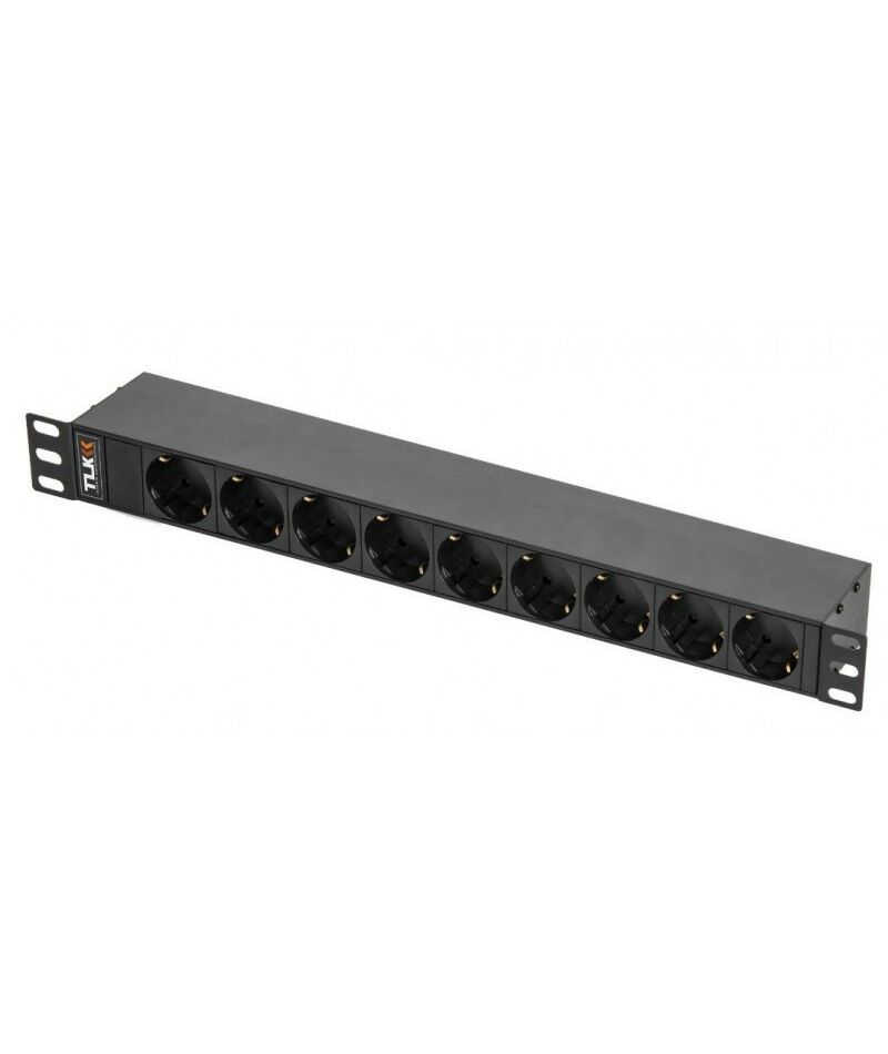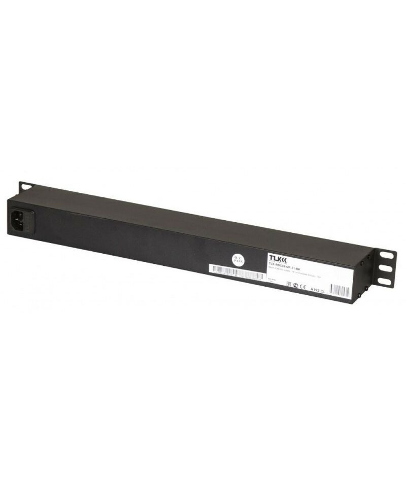 Блок электрических розеток TLK TLK-RSC09-MF-01-BK 19", 9 гнезд "евророзетка", макс. нагрузка 10 А, без шнура питания, вход С14 + предохранитель 10 А, металлический корпус, макс. мощность 2500 Вт, 487,5*44.4*68 мм