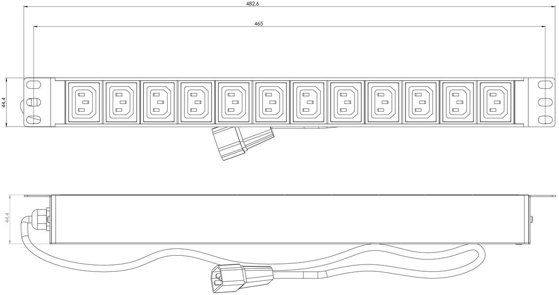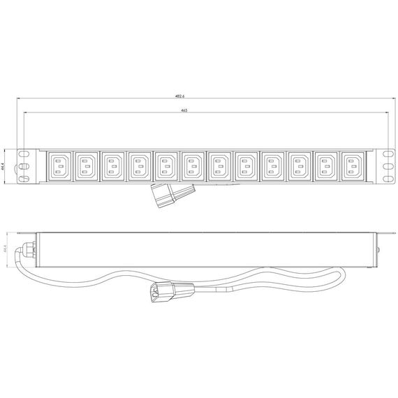 Блок распределения питания Hyperline SHE19-12IEC-2.5IEC гор.размещ. 12xC13 базовые 10A C14 2.5м