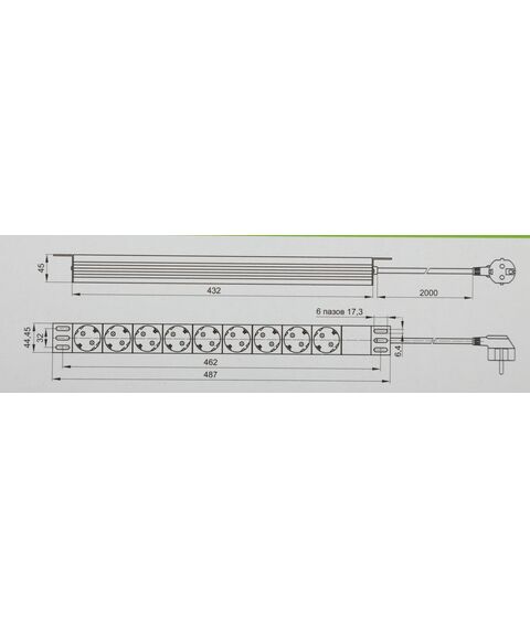 Блок распределения питания ITK PH22-9D1-P гор.размещ. 9xSchuko базовые 16A Schuko 2м