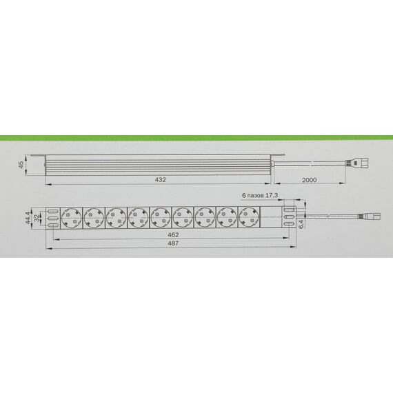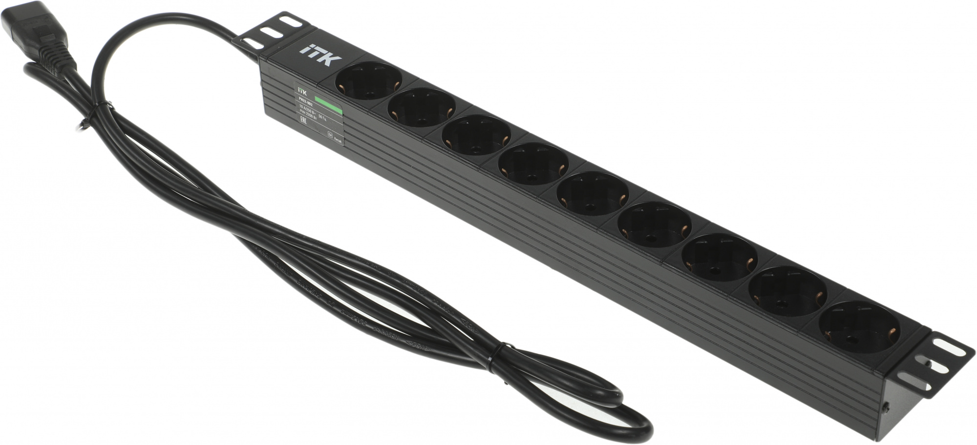 Блок распределения питания ITK PH22-9D2 алюминевый профиль гор.размещ. 9xSchuko базовые 10A C14 2м