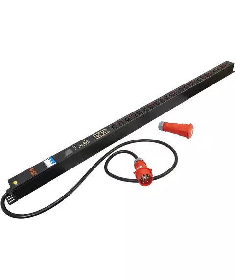 Блок распределения питания PowerCom PDU-32AVMS24-18C3-6C9-3P верт.размещ. 18xC13 6xC19 с сетевым мониторингом 3x32A EN 60309 2м