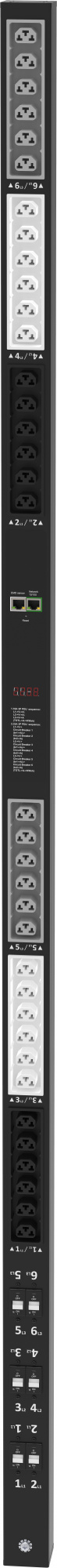 Блок распределения питания RakTek RTP3E3236 Metered Lite верт.размещ. 36xC13/C19 упрощенное измерение по вводу 3x32A IEC 60309 3м
