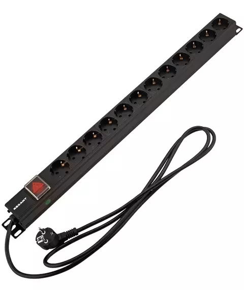 Блок распределения питания Rexant 04-0204-2 верт.размещ. 12xCEE7/4 базовые 16A CEE7/7 2м