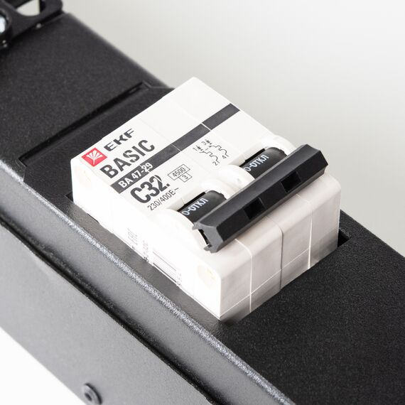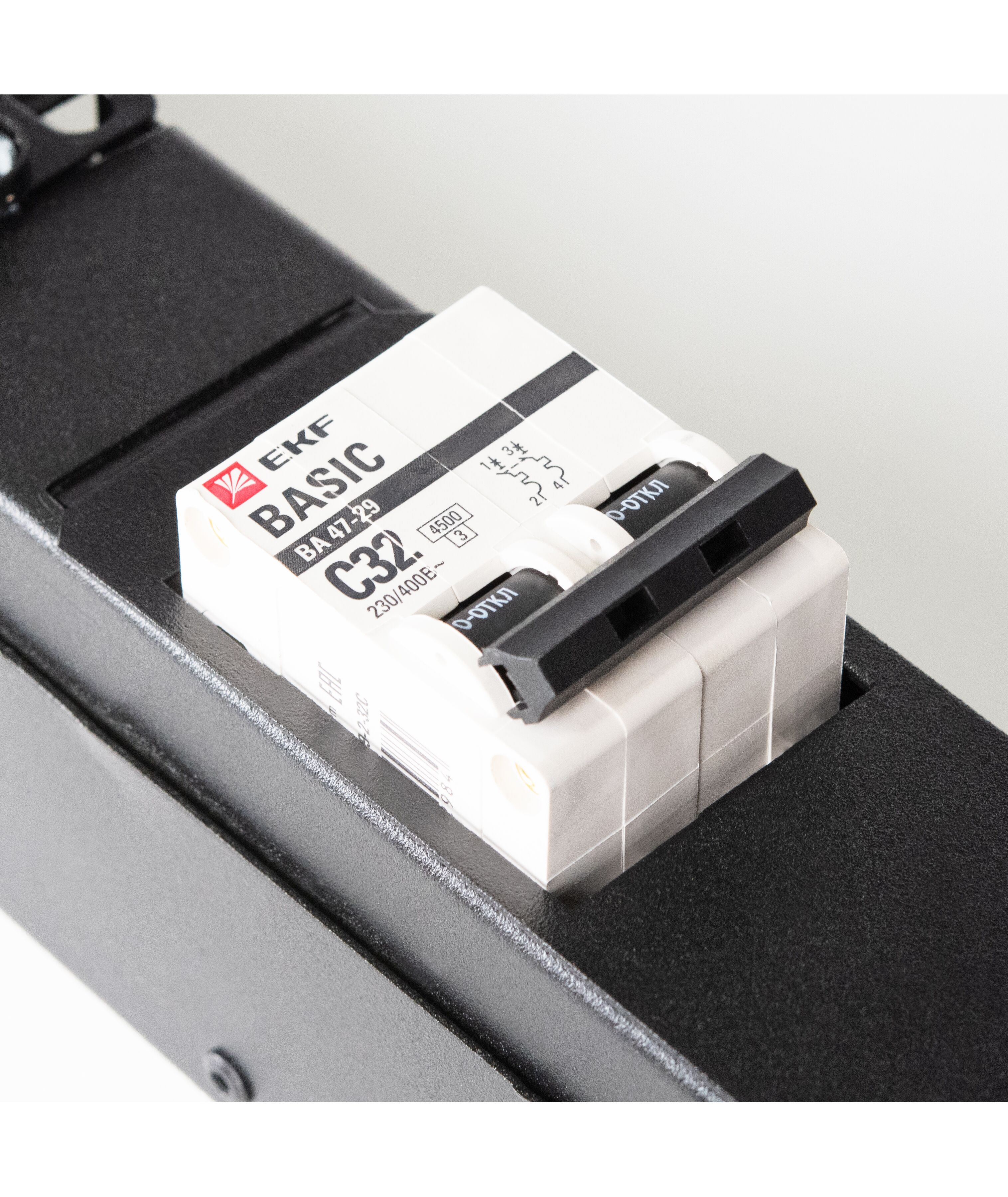 Блок электрических розеток TLK-PSA36B06-MD-05-BK состоит из 36 розеток C13 IEC 60320 и 6 розеток EC320 C19 соединённых шинами питания, изготовленных из латуни марки Л63Т сечением 6 мм² каждая. Блок розеток имеет автоматический выключатель модели EKF 2/32А (по предварительному заказу модель автоматического выключателя может быть другая). Вывод кабеля питания осуществлен сбоку, кабель питания имеет длину 2.5м (3х4.0мм2) вилку IEC 60309 32A (2P+E). В комплекте с блоком поставляются кронштейны для крепления.