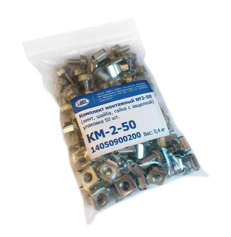 Комплект монтажный ЦМО КМ-2-50 № 2 (винт, шайба, гайка с защелкой), упаковка 50 шт.