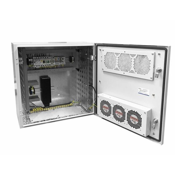 Шкаф коммутационный настенный ЦМО ШТВ-Н-15.6.5-4ААА-Т1 15U 600x530мм пер.дв.металл несъемн.бок.пан. 150кг серый 120град. 750мм всепогодный с вентилятором с нагревателем укомплектованный
