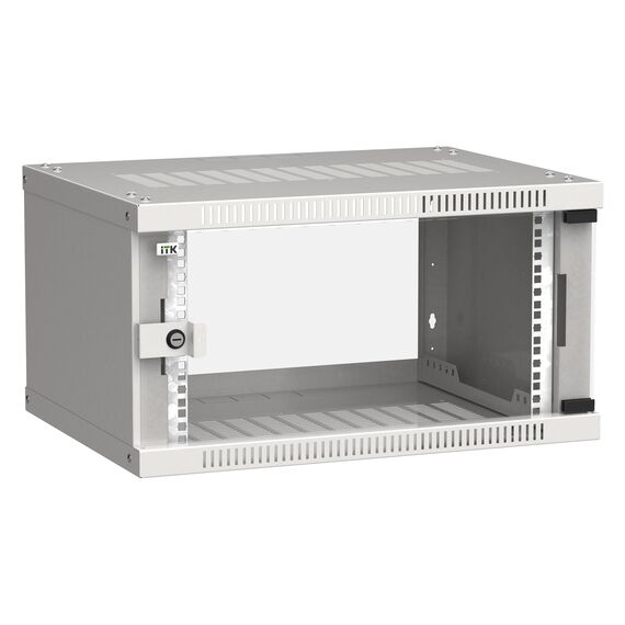 Шкаф коммутационный Linea WE настенный ITK LWE3-06U64-GF 6U 600x450мм пер.дв.стекл направл.под закл.гайки 50кг серый 400мм 11кг 200град. 320мм 20 сталь