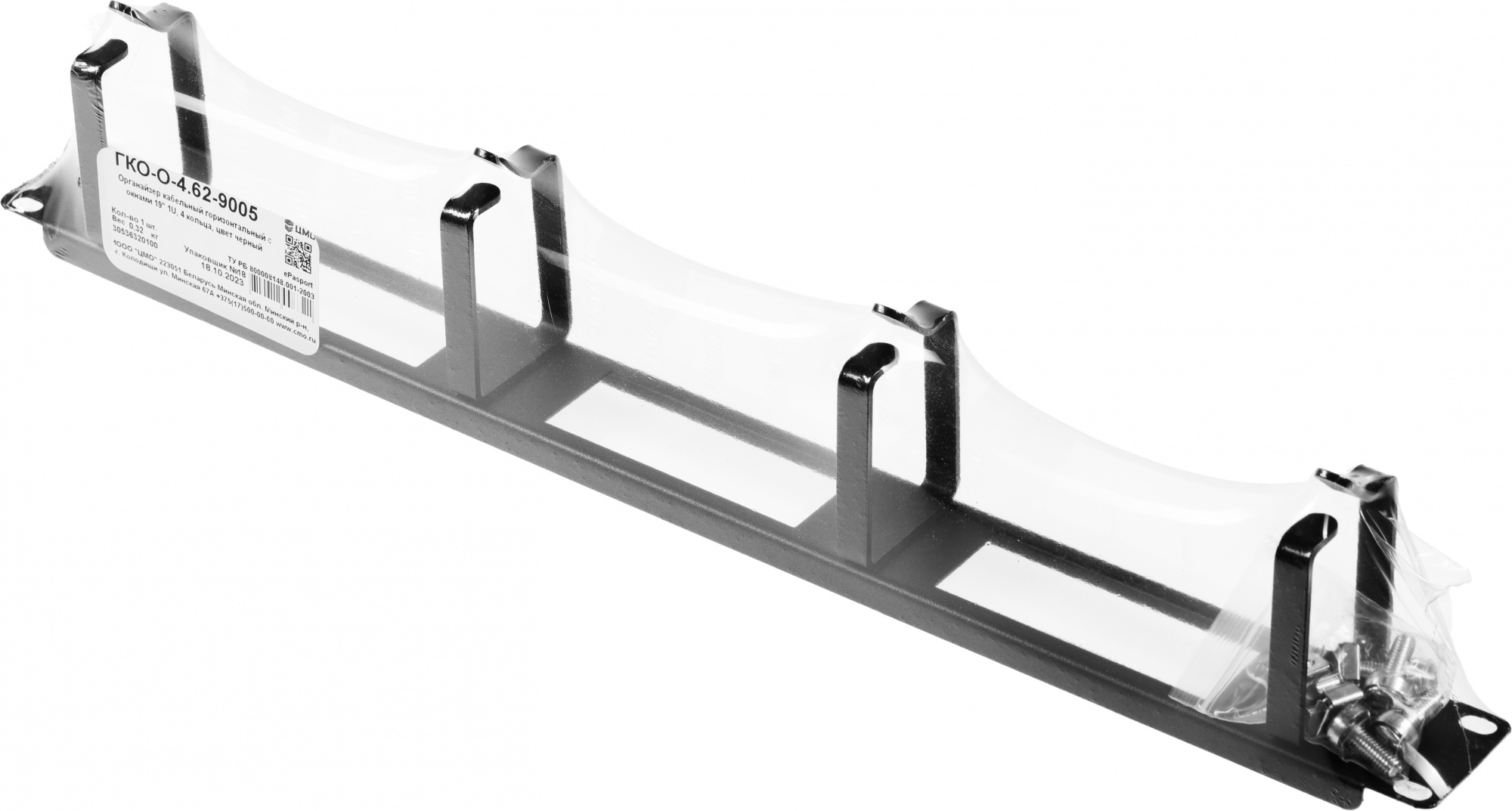 Кабельный органайзер горизонтальный ЦМО ГКО-О-4.62-9005 односторонний кольца 1U шир.:19" глуб.:85мм