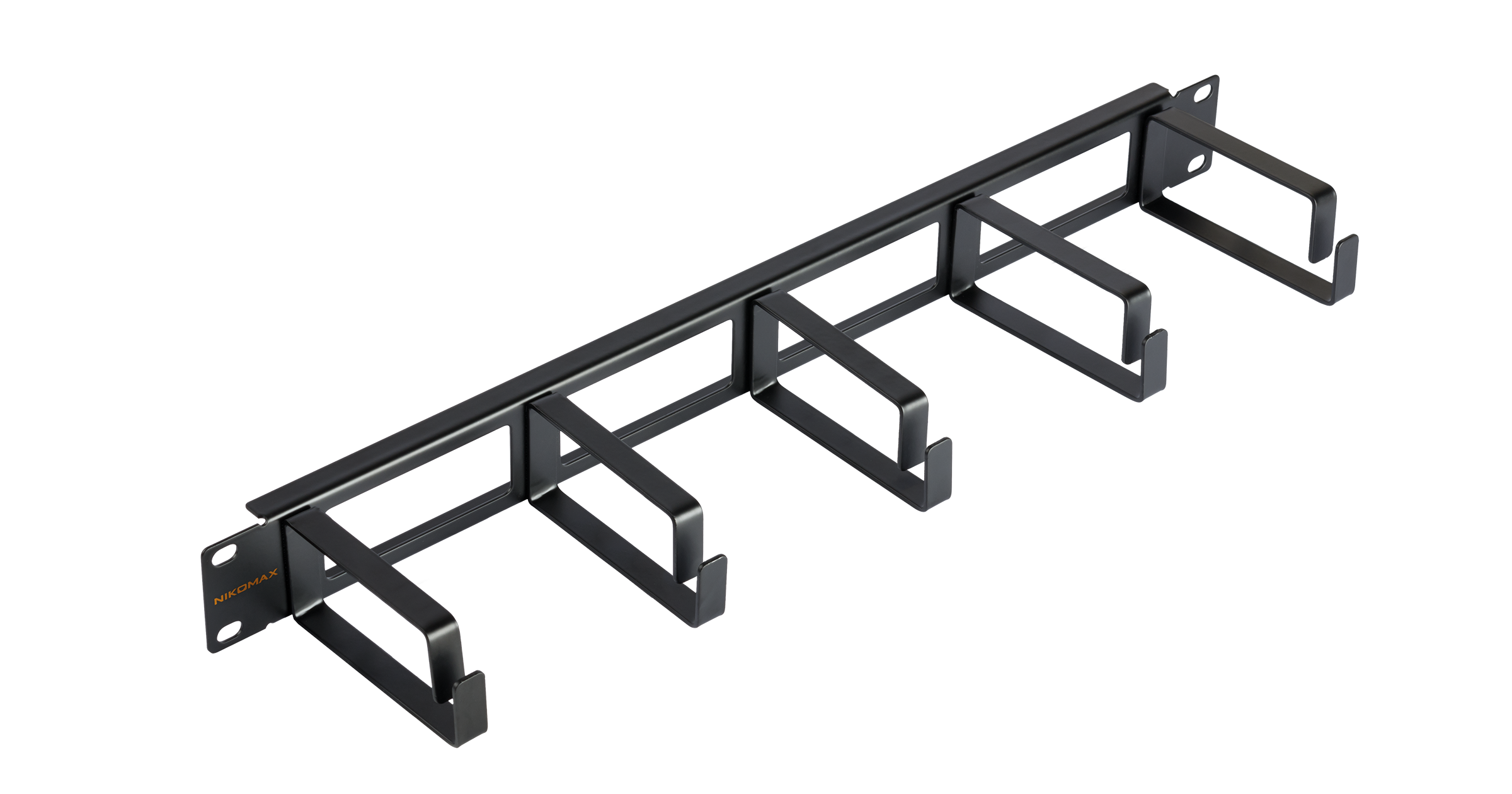 Кабельные органайзеры предназначены для укладки избыточной длины коммутационных или аппаратных шнуров, что позволяет упорядочить их размещение, избежать петель и обеспечить хорошую видимость элементов маркировки. Следствием этого является надежность системы и простота ее обслуживания. Кабельный органайзер NIKOMAX NMC-OK800H-1U-BK-2 состоит из стального (1,6 мм) основания, на которое установлены металлические кольца (2,2 мм). Особенностью данного органайзера является наличие монтажных отверстий в несущей конструкции. Органайзеры поставляются c глубиной колец 80 мм.