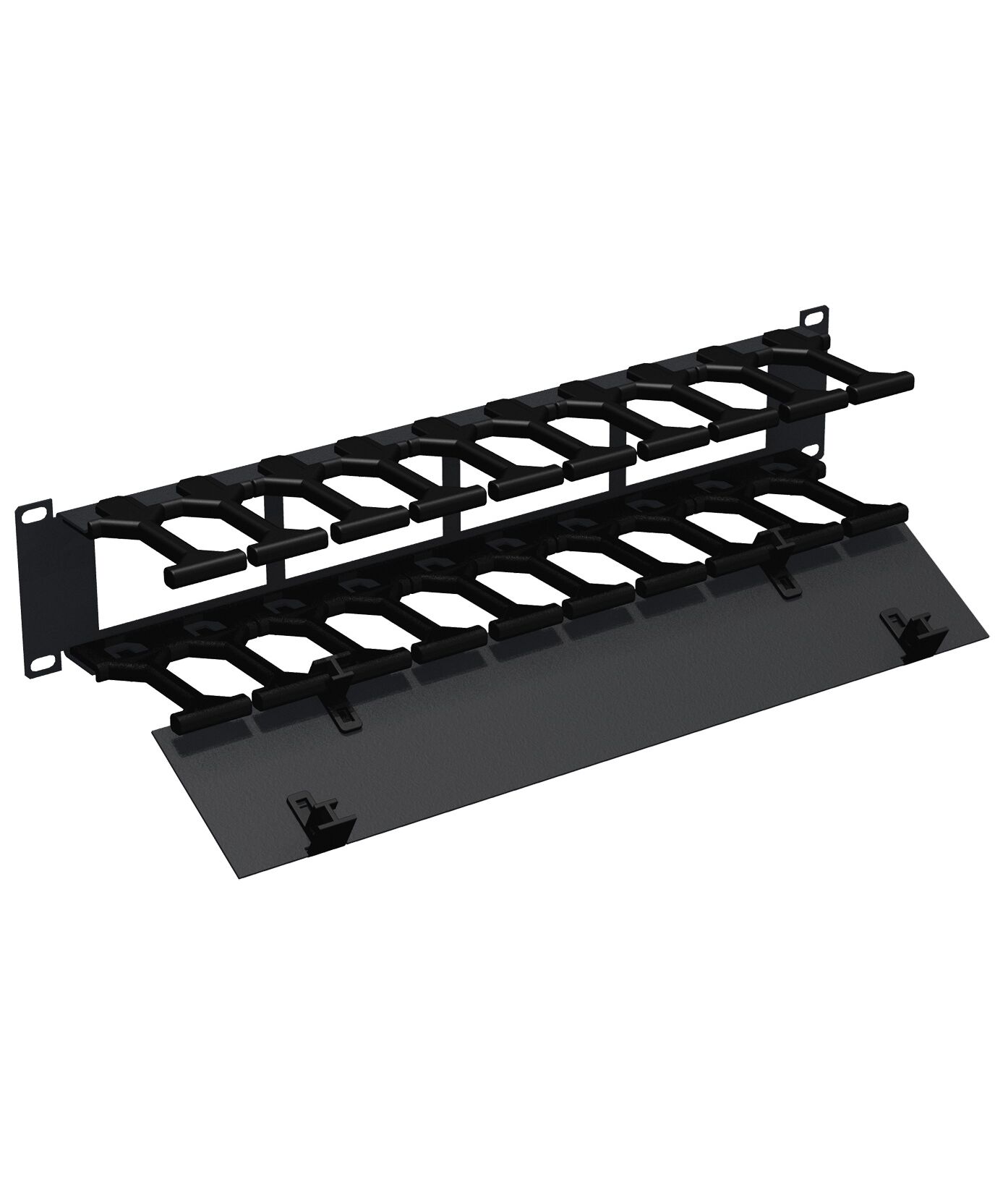 Кабельный органайзер Nikomax NMC-OP100CF-2U-BK 19", 2U, полезная глубина 100 мм, металлический, с пластиковыми пальцами, с крышкой, черный