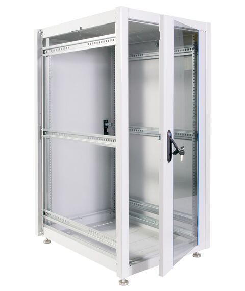 Шкаф коммутационный ЦМО ШТК-Э-24.6.6-13АА напольный 24U 600x600мм пер.дв.стекл металл 2 бок.пан. направл.под закл.гайки 540кг серый 515мм 51кг 180град. 1187мм IP20 сталь