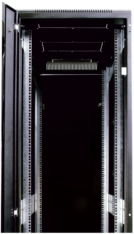 Шкаф серверный ЦМО ШТК-М-42.8.10-1ААА-9005 напольный 42U 800x1000мм пер.дв.стекл задн.дв.спл.стал.лист 2 бок.пан. направл.под закл.гайки 550кг черный 855мм 134.6кг 180град. 2030мм IP20 сталь