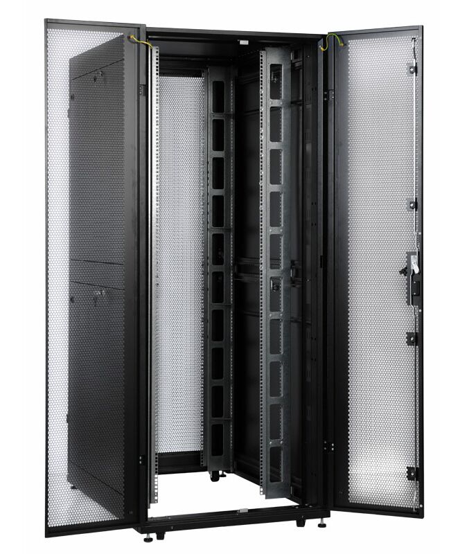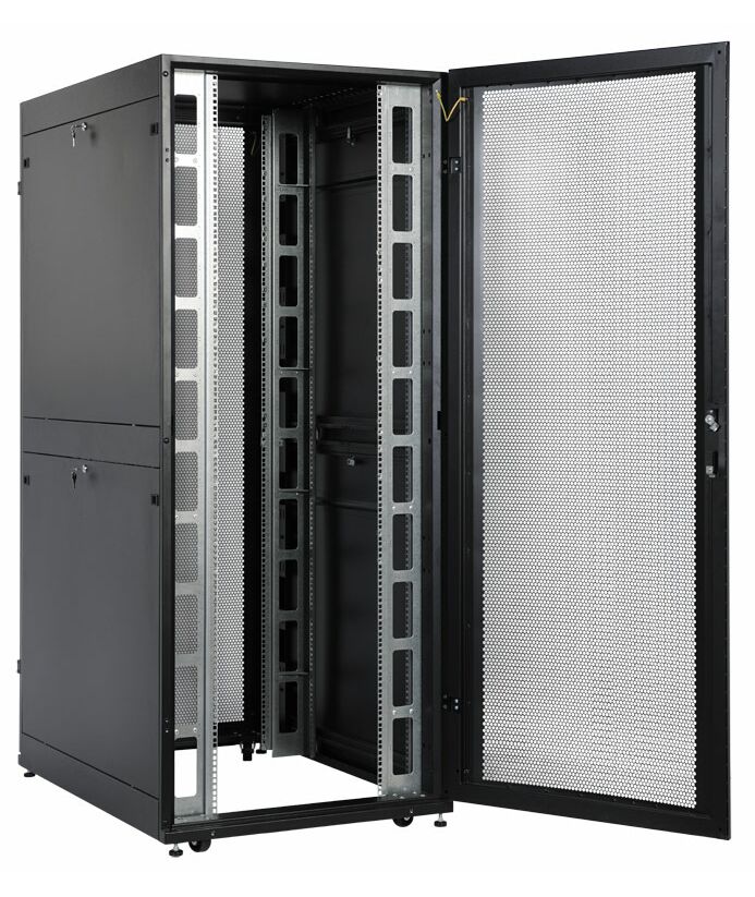 Шкаф серверный ЦМО ШТК-СП-42.8.10-48АА-9005 напольный 42U 800x930мм пер.дв.перфор. задн.дв.перфор.2-хст. 2 бок.пан. 1350кг черный 690мм 180град. 1950мм