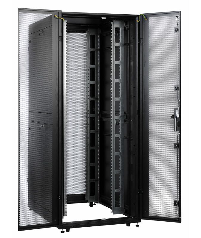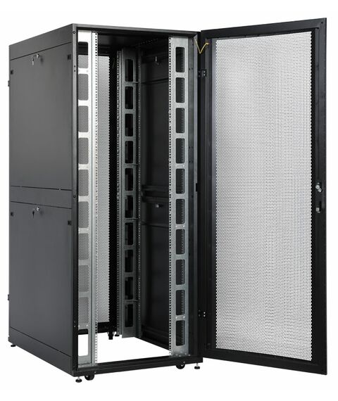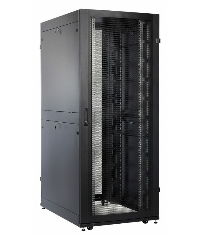 Шкаф серверный ЦМО ШТК-СП-42.8.12-48АА-9005 напольный 42U 800x1190мм пер.дв.перфор. задн.дв.перфор.2-хст. 2 бок.пан. направл.под закл.гайки 1350кг черный 890мм 174кг 120град. 1950мм IP20 сталь