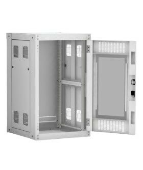 Наличие у шкафа двери с углом открытия 180 градусов и съемных боковых панелей и задней панели, предоставляет доступ для установки и обслуживания оборудования с четырех сторон.