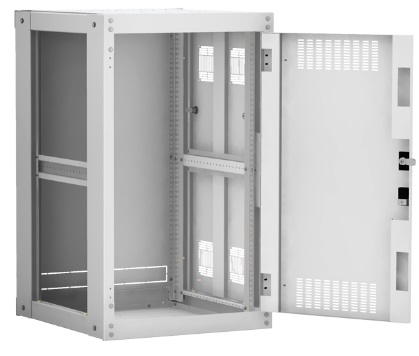 Наличие у шкафа двери с углом открытия 180 градусов и съемных боковых панелей и задней панели, предоставляет доступ для установки и обслуживания оборудования с четырех сторон.