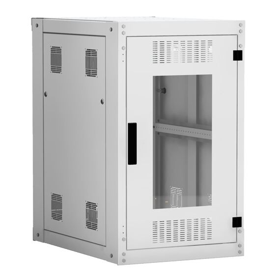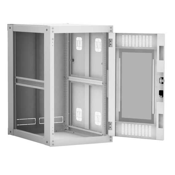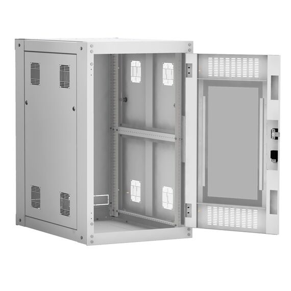 Наличие у шкафа двери с углом открытия 180 градусов и съемных боковых панелей и задней панели, предоставляет доступ для установки и обслуживания оборудования с четырех сторон.