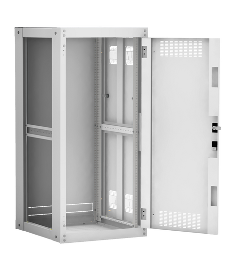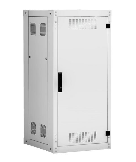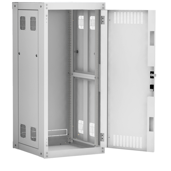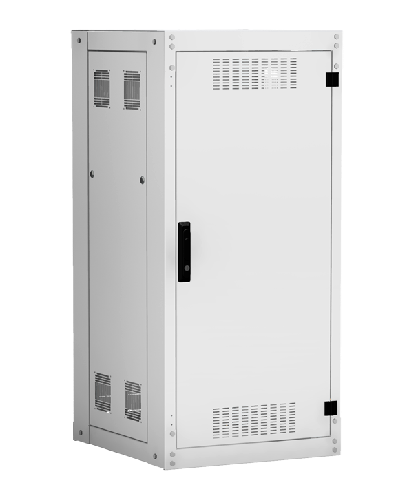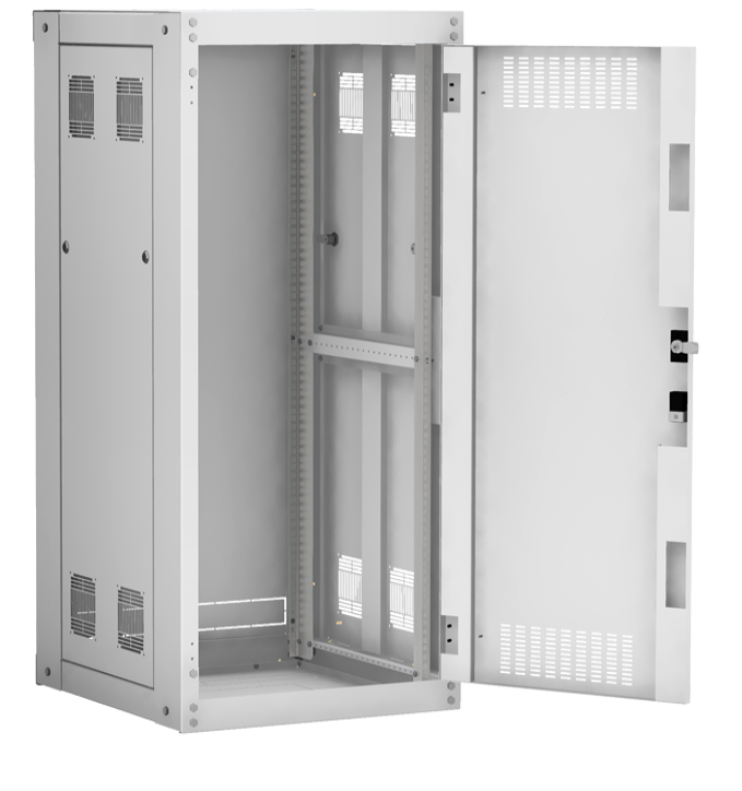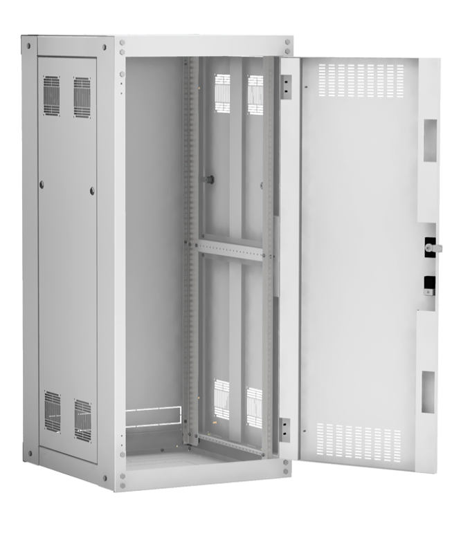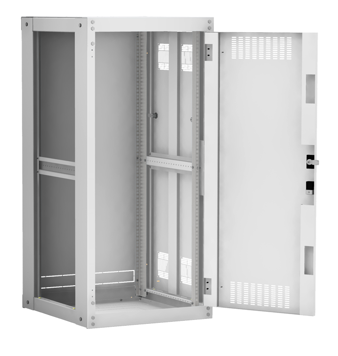 Наличие у шкафа двери с углом открытия 180 градусов и съемных боковых панелей и задней панели, предоставляет доступ для установки и обслуживания оборудования с четырех сторон.