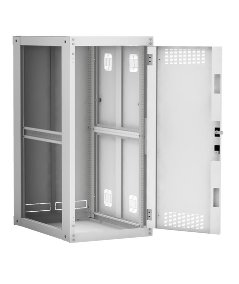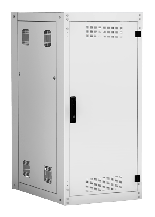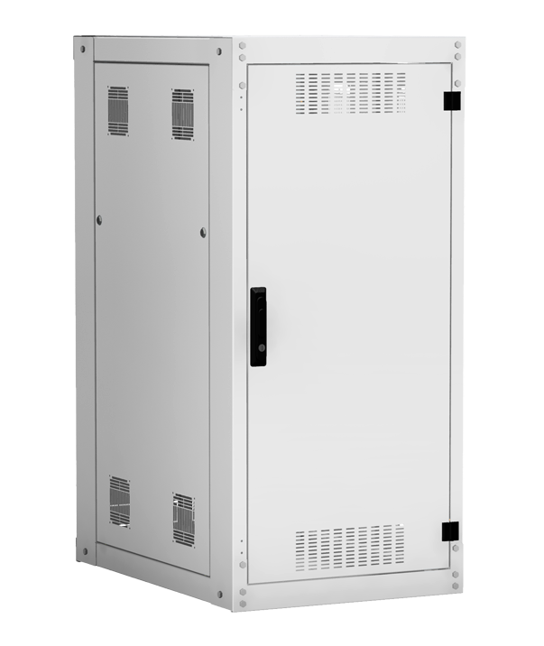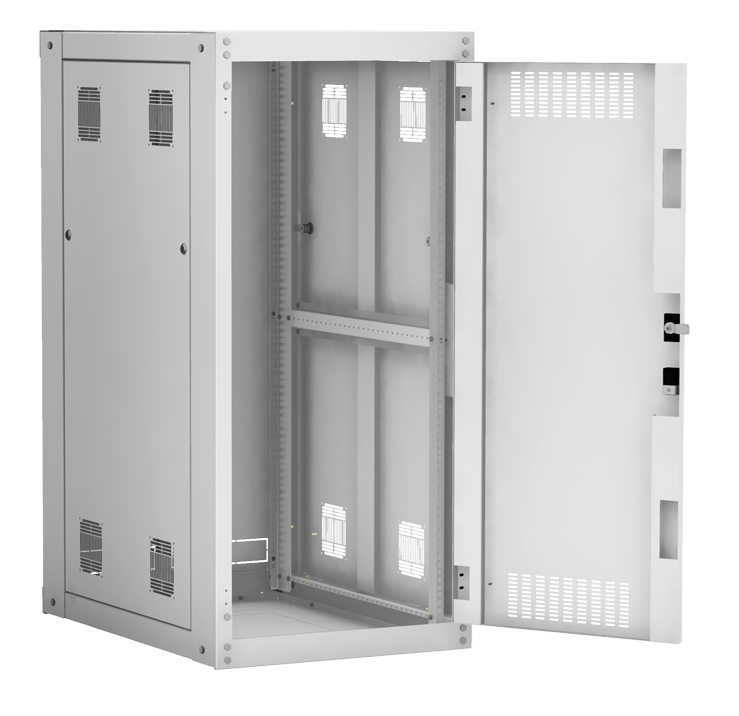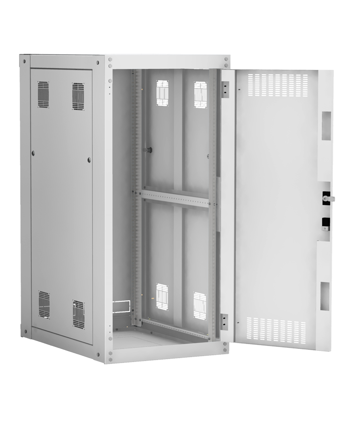 Наличие у шкафа двери с углом открытия 180 градусов и съемных боковых панелей и задней панели, предоставляет доступ для установки и обслуживания оборудования с четырех сторон.