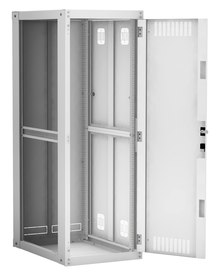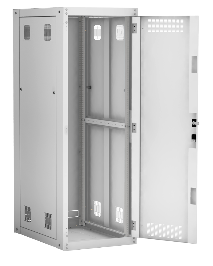 Наличие у шкафа двери с углом открытия 180 градусов и съемных боковых панелей и задней панели, предоставляет доступ для установки и обслуживания оборудования с четырех сторон.