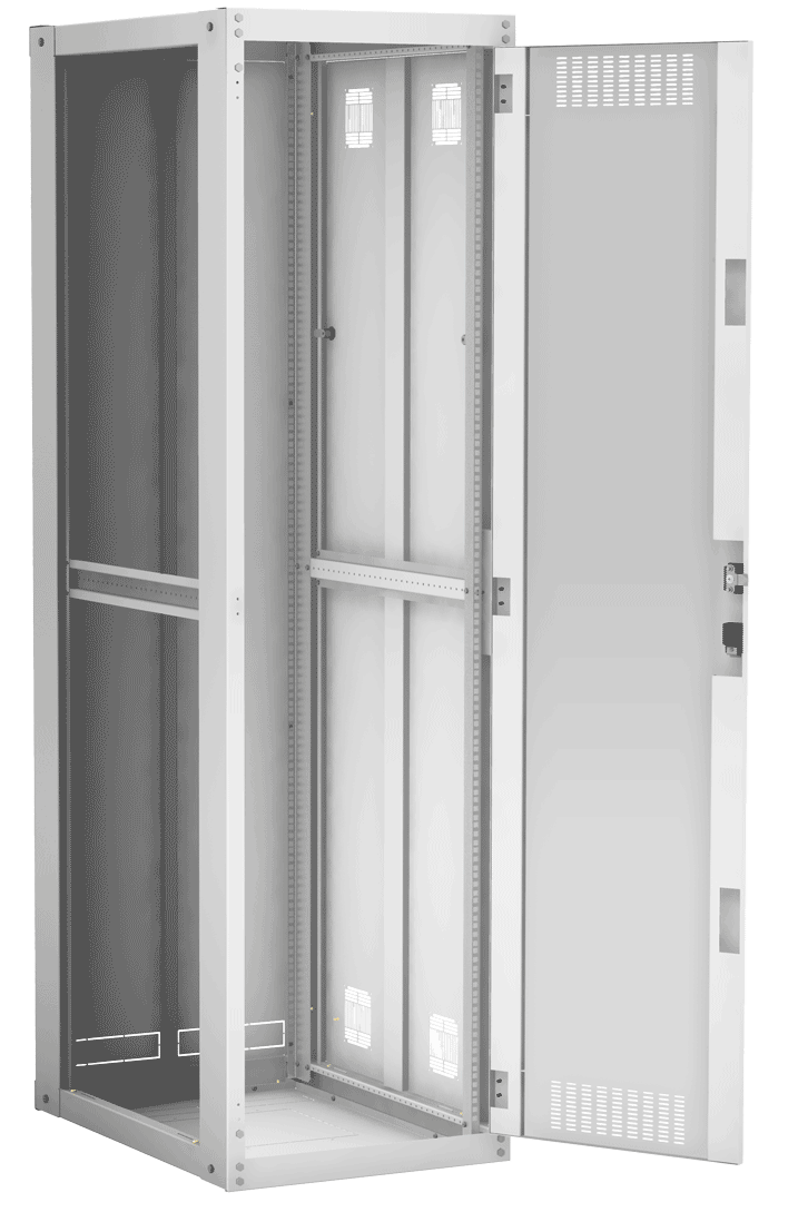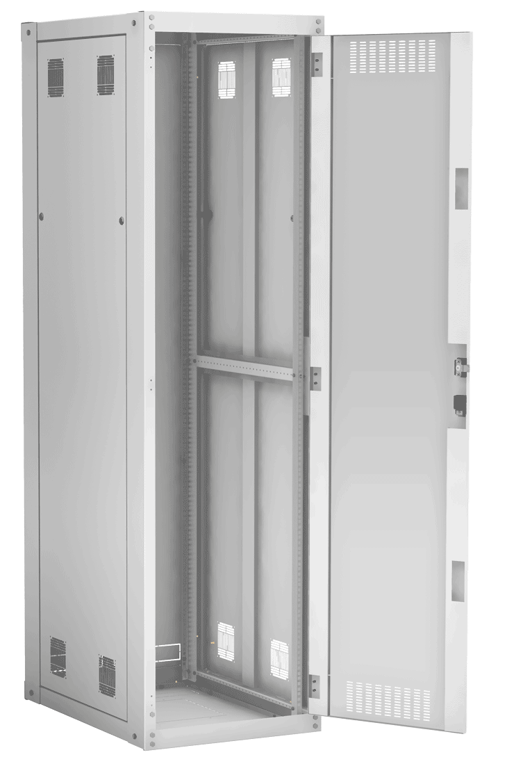 Наличие у шкафа двери с углом открытия 180 градусов и съемных боковых панелей и задней панели, предоставляет доступ для установки и обслуживания оборудования с четырех сторон.
