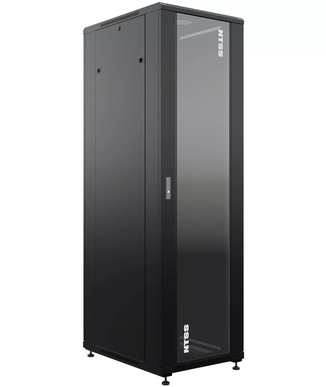 Шкаф серверный NTSS NTSS-R42U6080GS-BL Премиум напольный 42U 600x800мм пер.дв.стекл металл 900кг черный 710мм 99кг 1987мм IP20 сталь