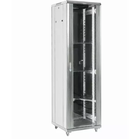 Шкаф коммутационный напольный Rexant 04-3266-211 32U 600x600мм пер.дв.стекл металл 2 бок.пан. направл.под винты 800кг серый 67кг 230град. 1609мм IP20 сталь