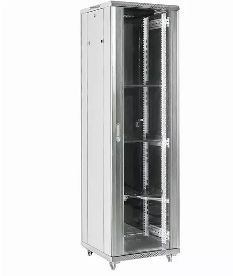 Шкаф коммутационный Rexant 04-3766-211 напольный 37U 600x600мм пер.дв.стекл металл 2 бок.пан. направл.под винты 800кг серый 75кг 230град. 1832мм IP20 сталь